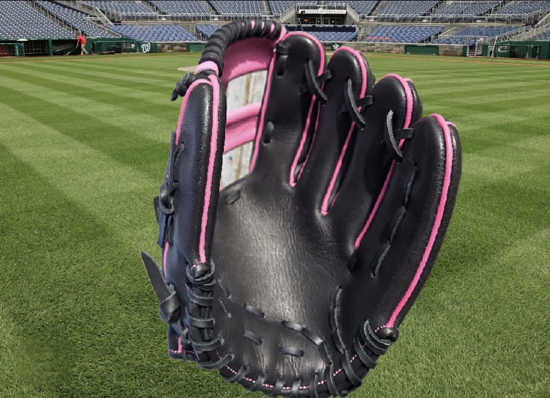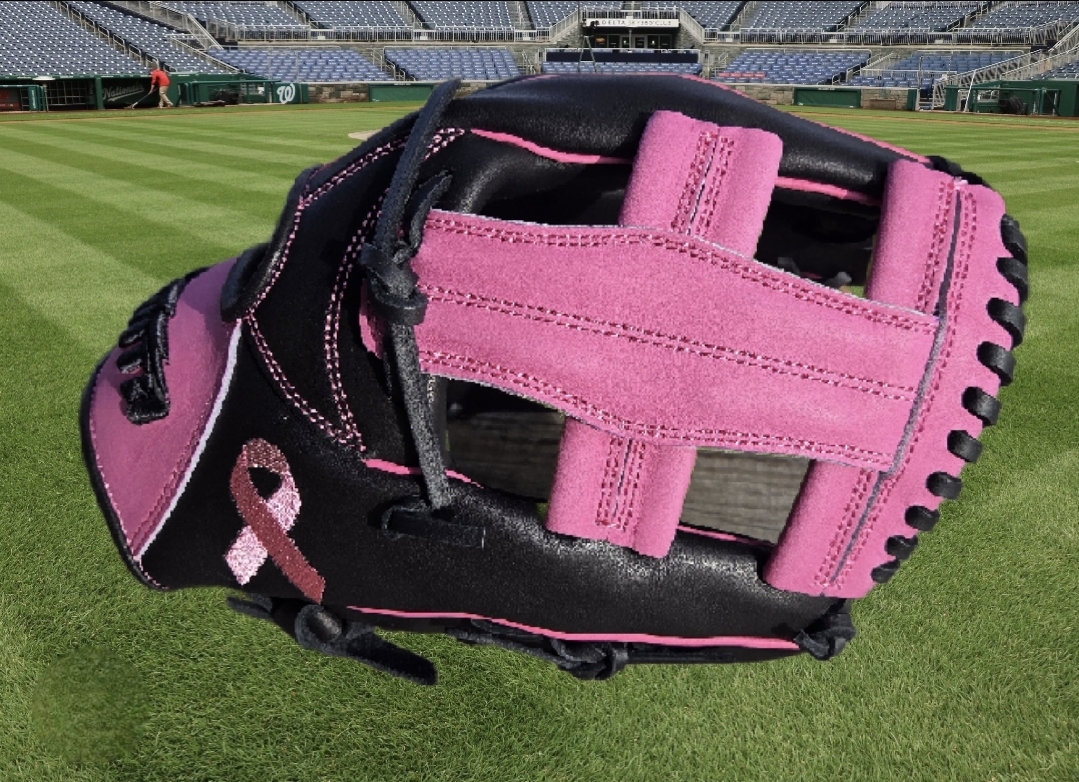 Add a touch of style and meaning to your game with this striking infielders baseball glove. Crafted from premium steerhide leather for exceptional durability and comfort, this 11.5-inch glove showcases a unique black and pink design with a pink ribbon motif, honoring breast cancer awareness. The E-Web construction ensures excellent ball control and quick transitions for infield play, while the thoughtful craftsmanship delivers peak performance. Stand out on the field while supporting a cause!