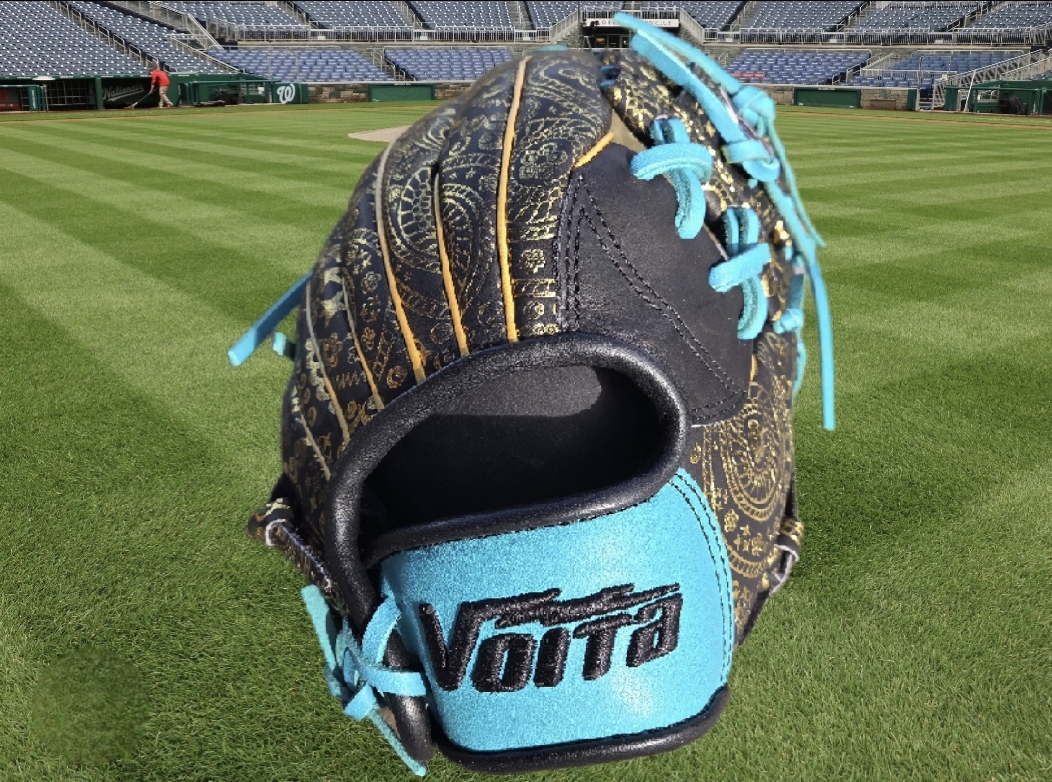 This premium infielders baseball glove is crafted from Japanese Kip leather, renowned for its lightweight durability and buttery smooth texture. Measuring 11.5 inches, it features a bold black teal color with striking gold tooled print accents, making it a standout on the field. The I-Web design ensures optimal control and quick transfers for infield plays, giving players a competitive edge. A perfect blend of style, performance, and craftsmanship!